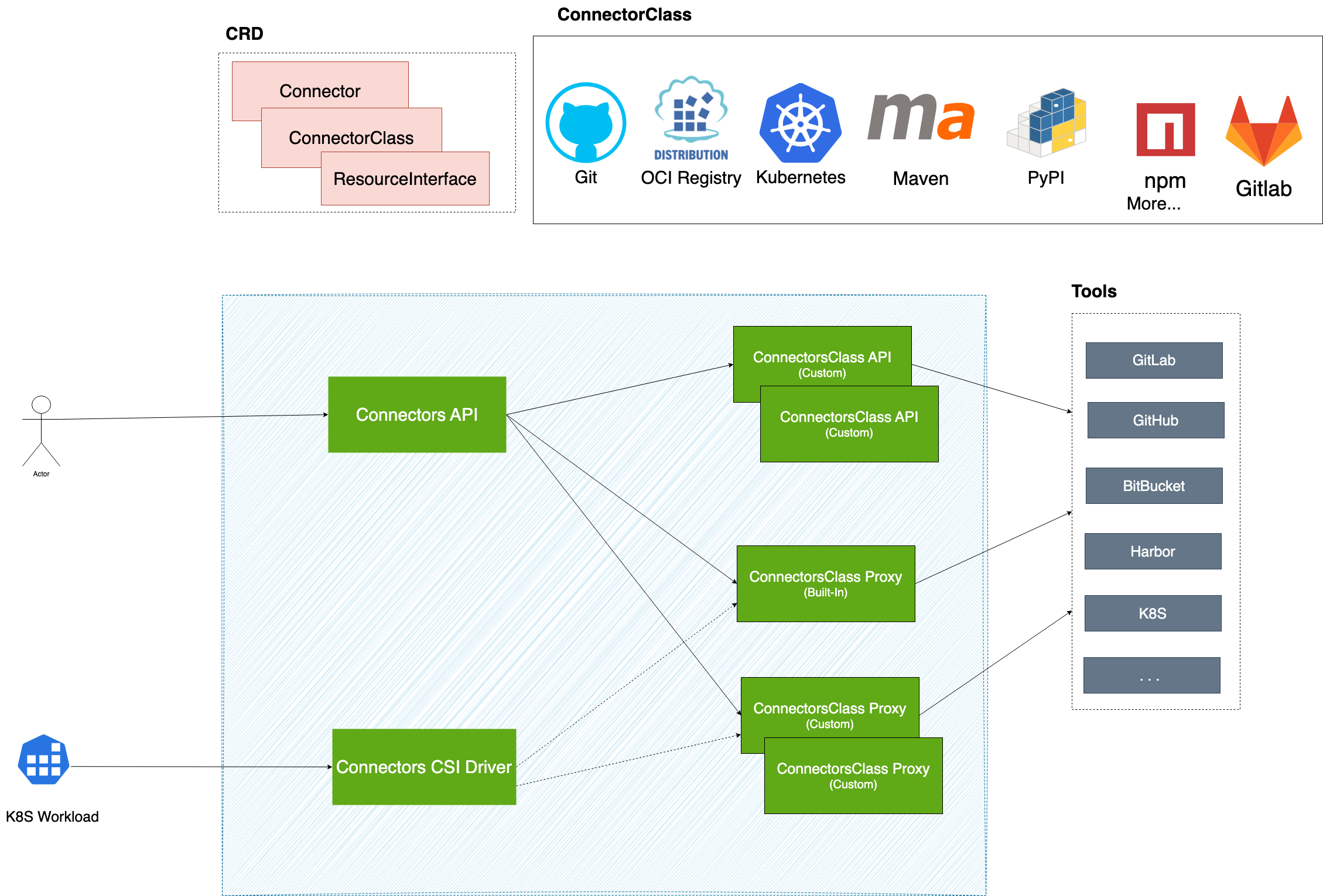 ConnectorConnectorClassConnectors ProxyBuilt-in Connectors ProxyCustom Connectors ProxyConnectors APIConnectorClass APIConnectors CSI DriverResourceInterfaceConnector