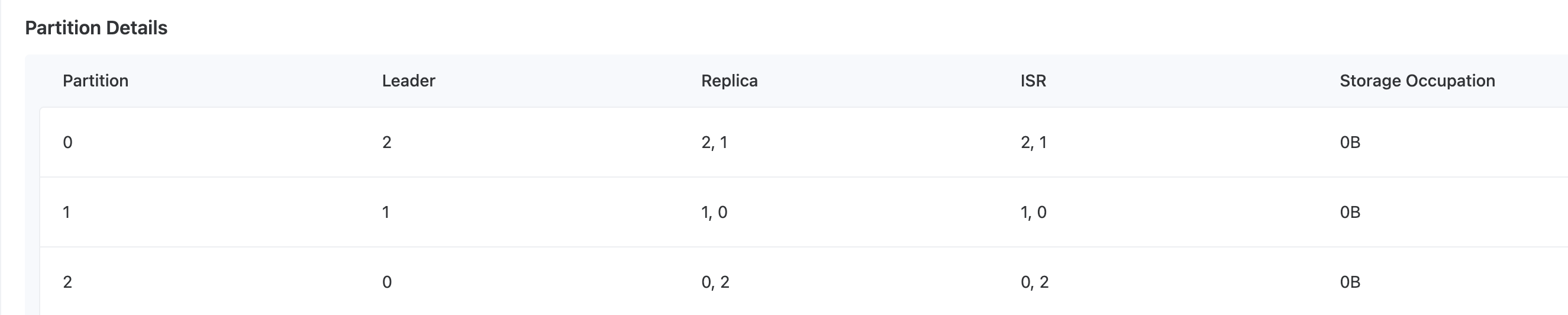 Partition Replica example: The replica of Partition 0 is distributed across Broker 2 (Leader) and Broker 1 (Follower)