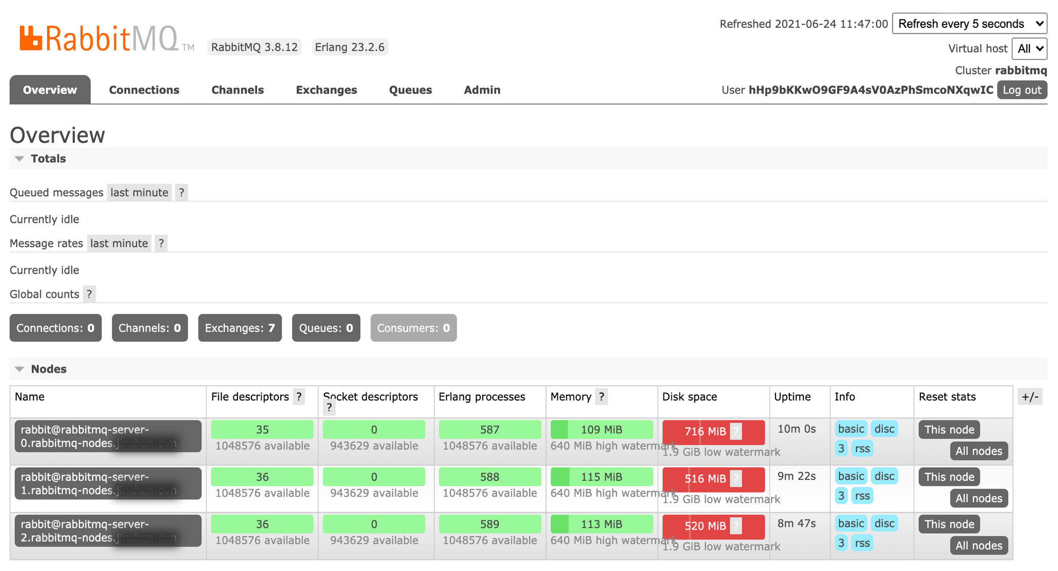 Click the link provided in the Port column to log into RabbitMQ Management UI in a new browser tab.