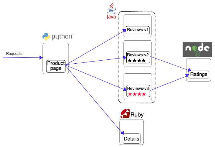 Bookinfo is a sample application provided by Istio that mimics an online bookstore. It consists of four separate services that together provide the functionality of viewing a book's description, book details (ISBN, number of pages, etc.), and some book reviews.